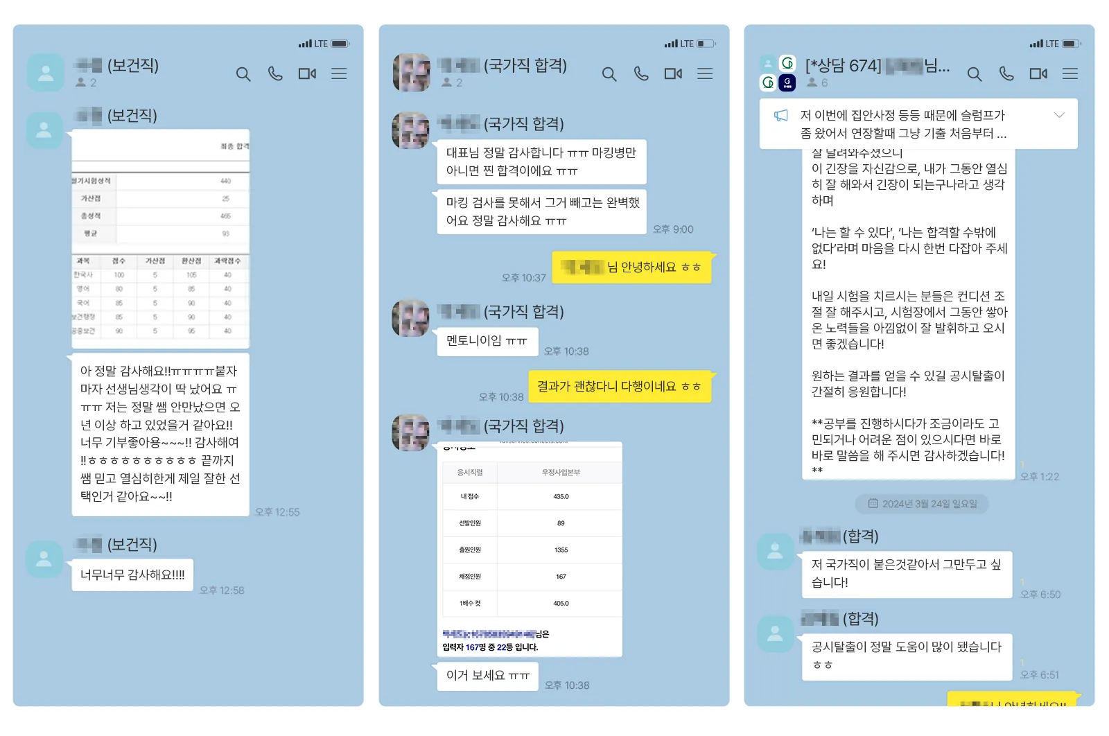“하루하루 계획을 따로 정하지 않아도 되니까 시간절약이 되고 스트레스 받지 않아도 됩니다.못하고 있으면 왜 완료 못했는지 연락이 와서 제대로 강제성 부여가 됩니다” - 합격생 김0현-