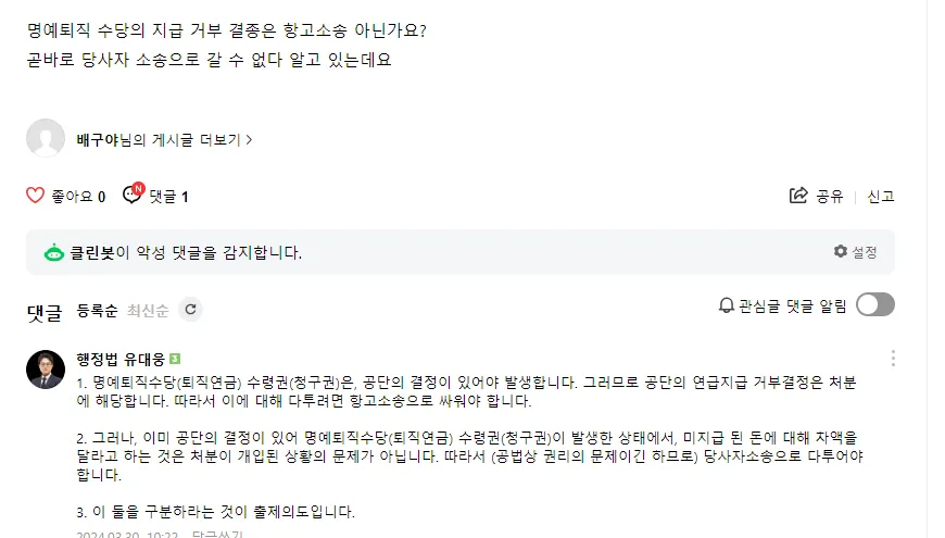 공단의 결정이 나서 명예퇴직수당 수령권이 있는 그 상태에서 미지급된 돈에 대한 차액을 달라고 하는 것은 처분이 개입되지는 않은 것