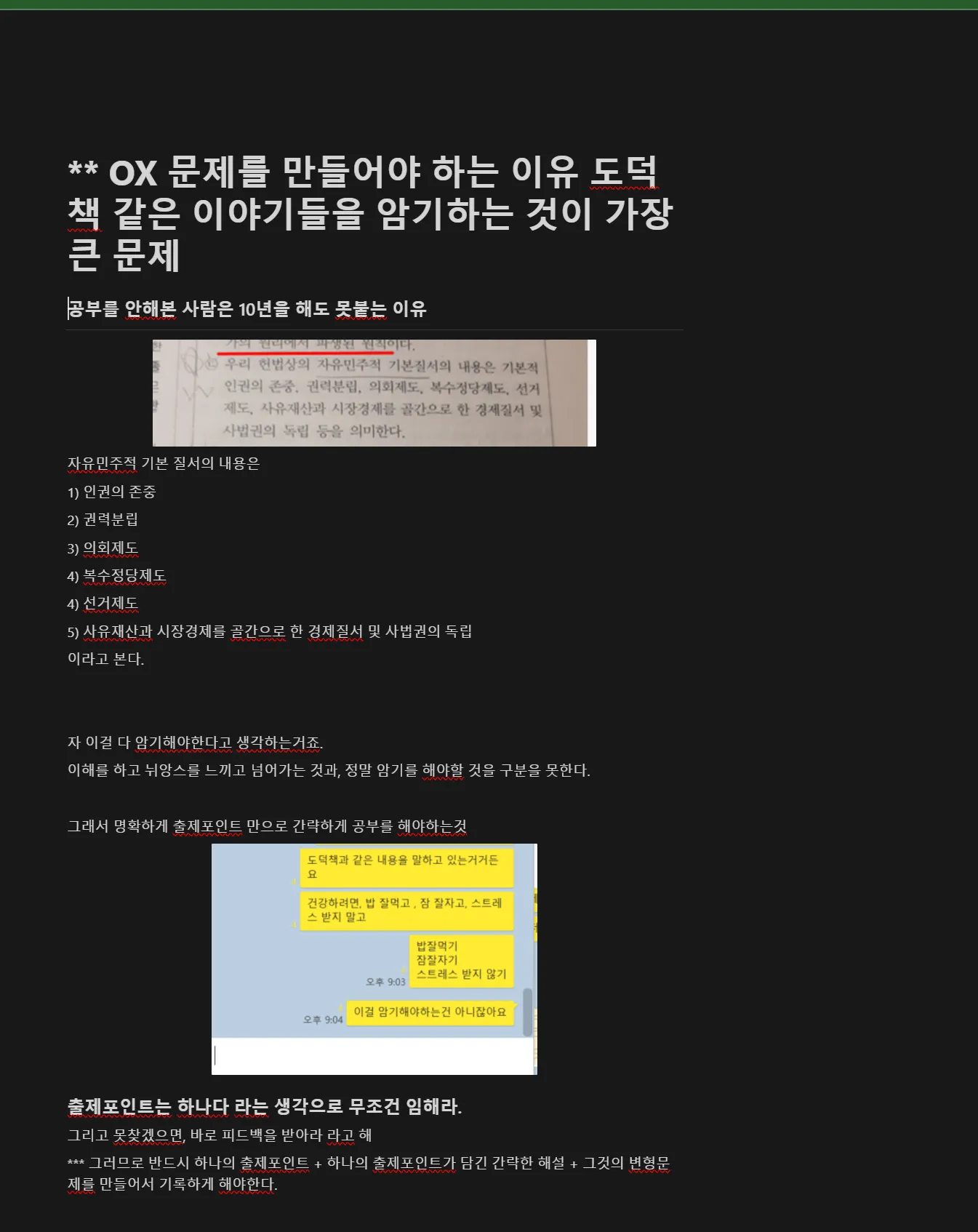 OX 문항으로 봐야하는 이유. 사실 공부를 못하는 사람은 하나의 지문과 해설에서 되게 많은 포인트를 찾아냄. 웃기지 않습니까? 이렇게 공부하는 사람이 과연 있을까요? 있습니다