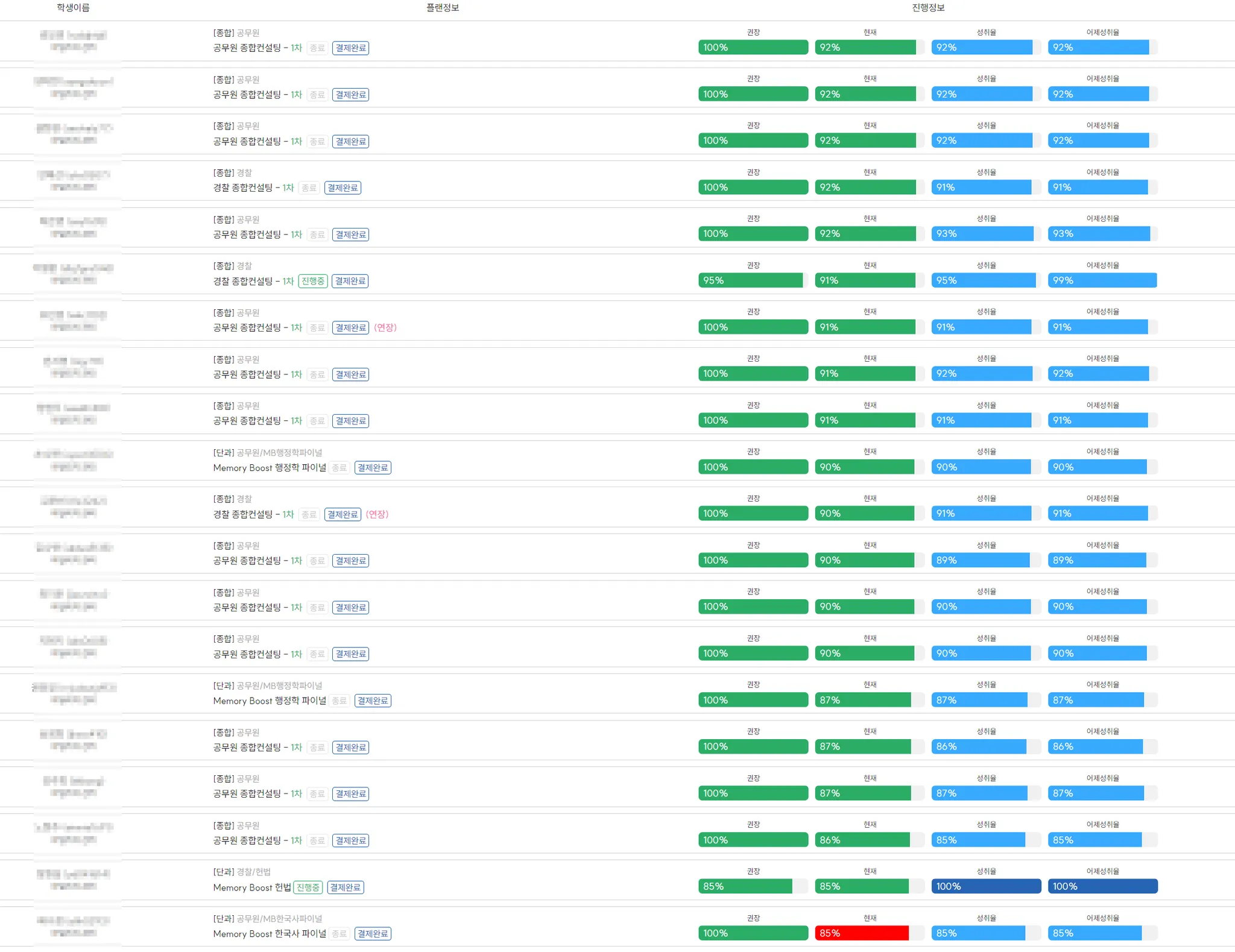 진도 달성률이 60% 이하로 떨어지면 다음 컨설팅 수강을 엄격하게 제한 합니다.