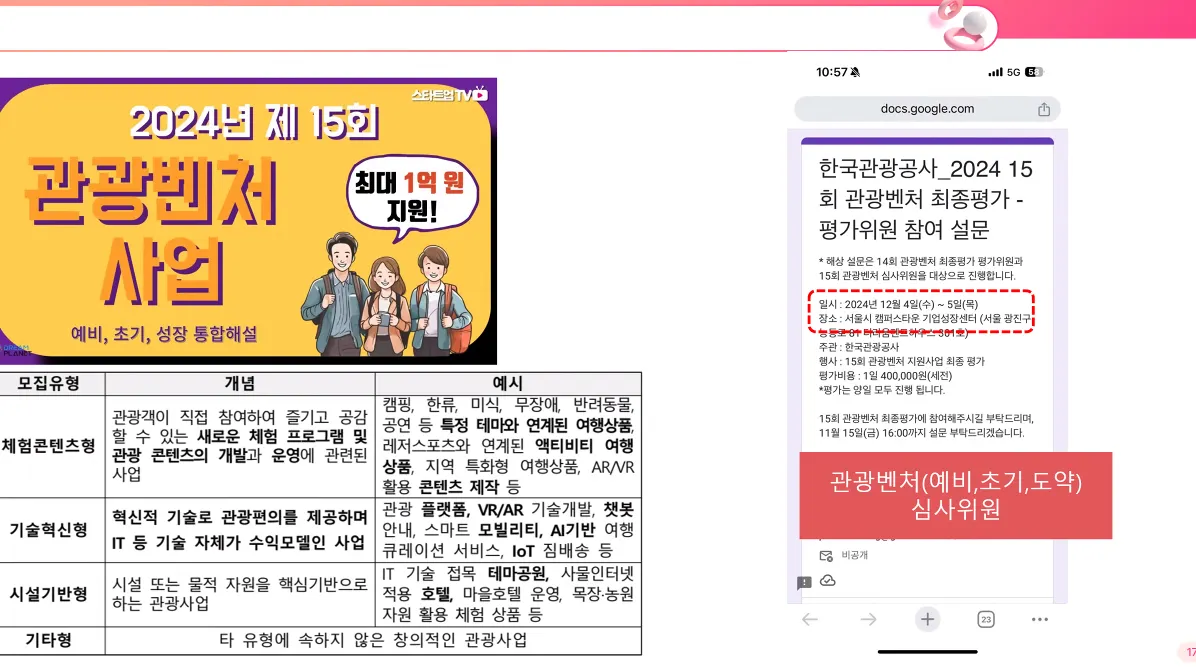 (19:55) 네. 평가 의원이라고 하면 어 많은 기관에서 이제 등록을 해서 할 수가 있는데 어 가장 이제 대표적인게 IRIS라고 해서 우리 과학기 수정부에서 나오는 전문 평가 이혼이 있습니다. 소위 R&D 쪽이라고 할 수가 있겠는데요. 연구 개발 관련된 정통적인 어 평가 어 기관이 있고 거기서 제가 평가원을 계속 하고 있고 올해부터는 제가 여기 보시는 것처럼 예 잠깐 깨같이 자랑을 하자면 평가원에서 평가 이원 장으로 제가 이제 승진을 해 가지고 이제 전체 평가 이원을 관리하는 역할까지 이제는 하고 있습니다. 그리고 여러분들 이제 관광과 관련된 로컬과 관련된 지방의 어떤 관광 체험 이런 것들을 도와주는 곳이 한국 관광공사라는 곳이 있습니다.