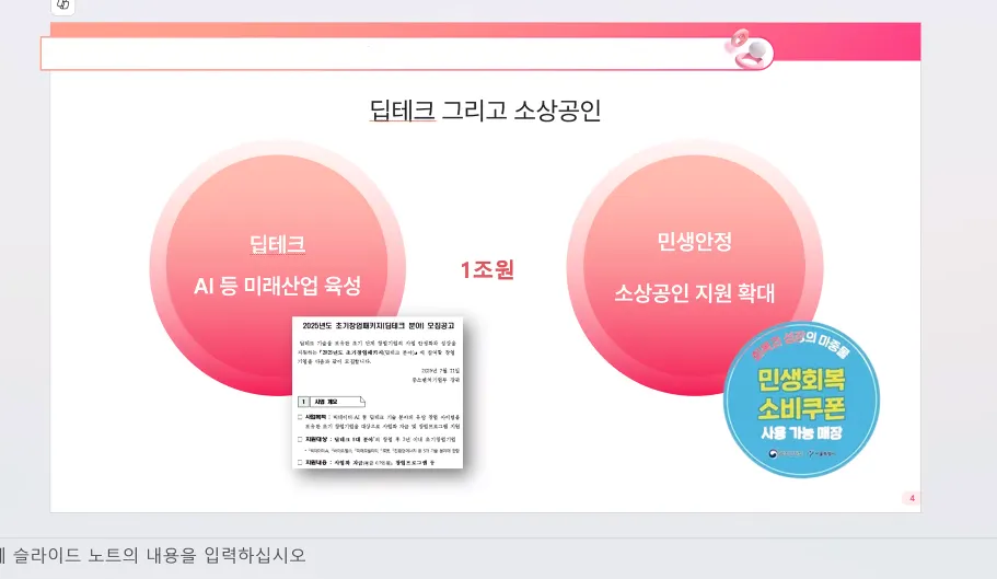 (1:07:07) >> 네. 그래서 앞부분에 뭐 이제 디테크나 소상공인에 대한 어떤 정의를 하시는게 있는데이 부분은 사실 어네 >> 크게 필요한 한가요? 디테크나 소상공인에 대해서 설명을 하는 어 맨 앞으로가 보시면은 >> 그러니까 사실이 앞부분에서는 사람들이 이때는 많이 안 들어오더라고요. 저 해 보니까. 그래서 >> 그게 있고 그다음에 이제 2차 추경이 나왔다. 2차 추경이 나와서 하는데 소상공이한테 돈 많이 준단다. 그래서 네가 너 너 소상공이잖아. 그럼 인생 회복 쿠폰 받았는데 다른 거 더 받고 싶지 않아. 약간 이런 걸 자극하려고 넣은 거예요 제가. >> 대표 말씀하신 대로 나는 안 되겠지 나는 지원금이 안 되겠지.