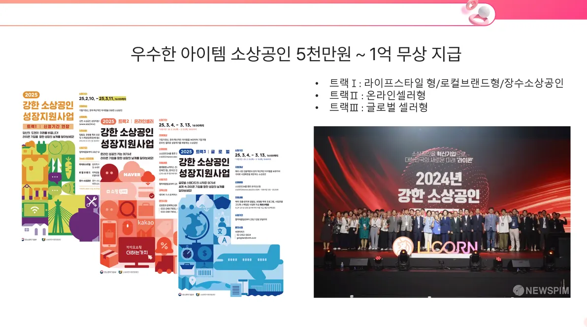 (17:00) 75개의 아이디어 아이템을 여러분들에게 드릴 예정이고 자 앞서 말씀드린 강한 소상공인네 지금 막 어 올해 기업들이 선발이 되고 있는 상황입니다. 하나씩 하고 있고 그 기업들이 어 올해 이제 교육도 받고 또 지원금도 받고 하면서 어 1차 오디션에서 6천만 원, 2차에서 4천만 원에서 1억의 지원금을 향해서 열심히 뛰고 있거든요. 그 기업들에 대한 정보는 유튜브에도 한 번씩나오니까 관심 유기해서 보시면서 여러분들도 꼭 고전하시고요. 사업이 몇 년 차이든 상관없으니까 여러분들이 사업을 하는 중간에 반드시 나는 강한 소상공인을 받아 가겠다라는 의지를 가지고 한번 하시면 좋을 것 같고 그래서 합격한 기업의 어 사업 계획서 사례를 제가 오늘 무료로 여러분들에게 드리겠습니다.