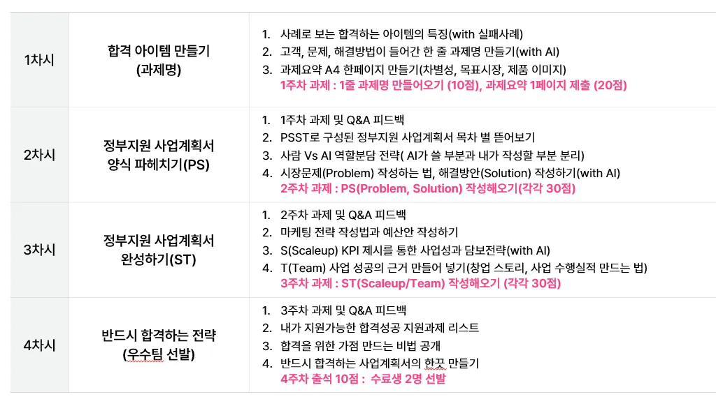 그래서 저희는 대표님들이 정부지원사업에 적극적으로 지원하실 수 있도록 대표님만의 사업계획서를 작성하는 강의 컨설팅을 진행을 하고 있구요. 어떤 시장에 진입해서, 어떻게 사업확장을 할 것이며, 어떤식으로 수익을 낼건지를 심사위원들의 눈높이에 맞춰서 작성할 수 있도록 공식을 알려드릴겁니다.