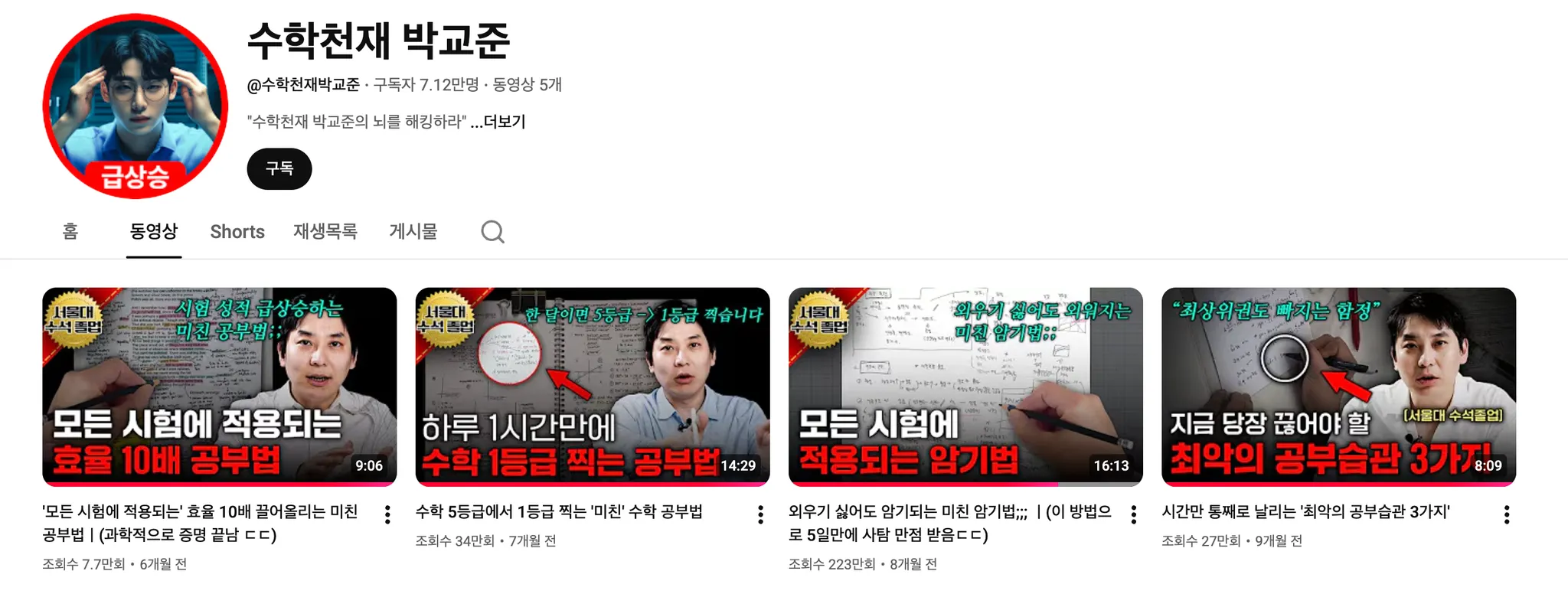 대제목 : 지식/정보 채널 브랜딩 전문 공시탈출 유튜브 채널 디자인 / 수학 천재 박교준 디자인